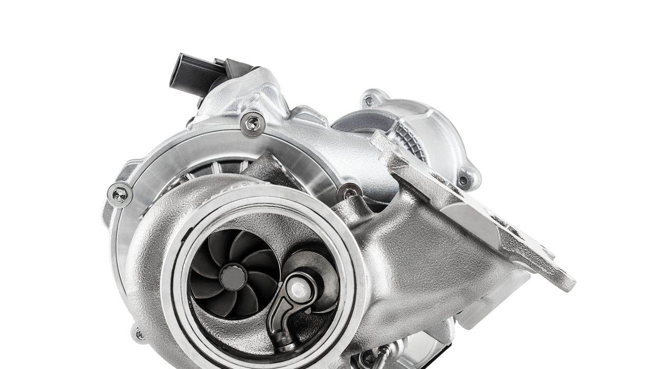 A variable turbine geometry (VTG) turbocharger does this with a system of mechanical guide vanes. It alters the cross-section of the exhaust flow inlet on the powertrain side. If the gas pressure falls at slower engine revs, the control system adjusts the guide vanes to narrow the cross-section. This speeds up the exhaust flow and increases the pressure. And as the exhaust gas pressure rises with the engine revs, the control system makes the inlet cross-section larger by altering the position of the guide vanes.